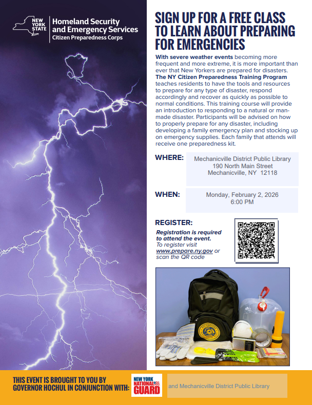 Participants will be advised on how to properly prepare for any disaster, including developing a family emergency plan and stocking up on emergency supplies. Each family that attends will receive one preparedness kit.