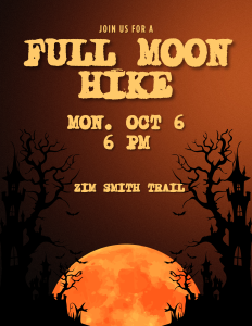 Join us for a fun hike on the Zim Smith Trail to enjoy the Harvest Moon.  Please bring a flashlight/headlamp. Register at the link below