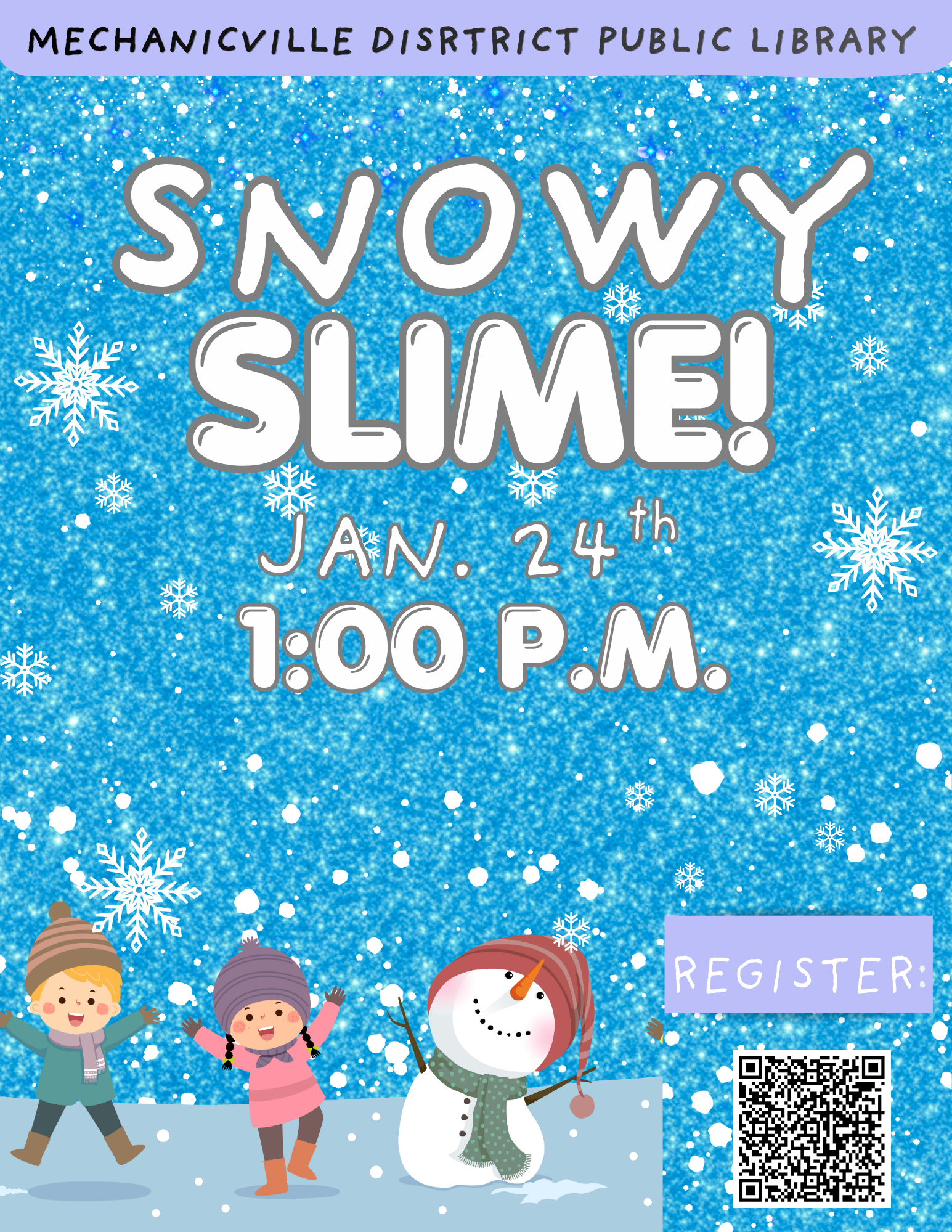 Join us at 1 pm as we make another round of slime with the theme of snowflakes!