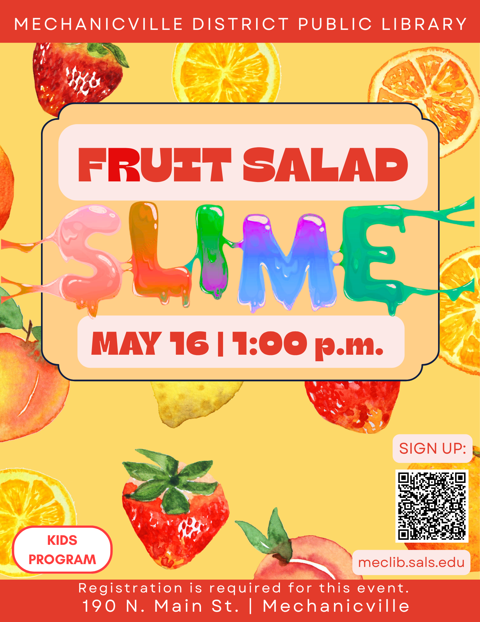 Pop in to the library to whip up a batch of some fresh and fruity slime at 1:00 p.m.