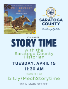 Join us for a special story time about Paul Revere’s Ride with Saratoga County Historian.