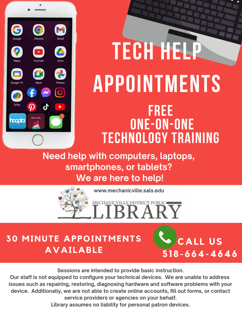 Fishing Poles are now available for Mechanicville City Residents aged 18+. Library Card is required and must be in good standing.